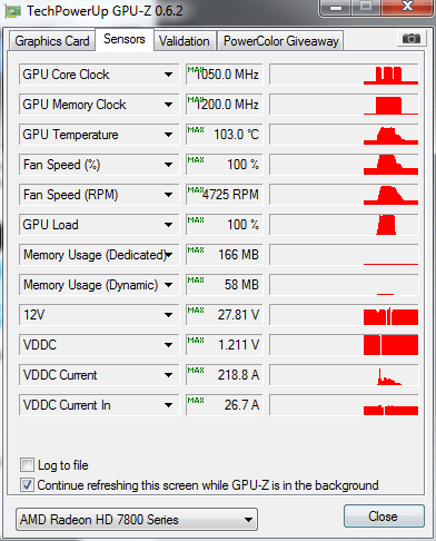 Ongelma on että pelatessa (Skyrim) näyttiksen tuulettimet alkoivat huutaa ja lämmöt nousi heti yli 90 asteen. Näyttis on uusi HD 7870. Kokeilin furmarkkia matalimmilla asetuksilla 400x300 resolla ja lämmöt nousee silti heti yli 80 asteen. Nettiä selatessakin lämmöt hyppii välillä yli 60C.