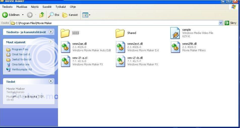 Toisaalta kovin vajaaltahan tuo kansio muutenkin näyttää, mm. varsinainen moviemk.exe puuttuu. Lisäksi minulla on paljon enemmän noita dll-tiedostoja Win XP SP3:ssa ja pääosin juuri versiota 2.1.4026.0.