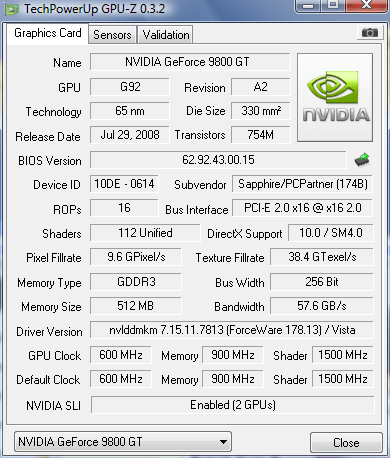 Vakiokelloilla oleva q6600 on niin hidas että ei sille kovin nopeaa näyttistä kannata ostaa. Ilmeisesti sulla on nyt 9800GT SLI kokoonpano joka ei ole ihan optimi ratkaisu. Prossessorisi kun on melkoinen pullonkaula tuolle kokoonpanolle. Pitäis prossu kellottaa jonnekkin 3Ghz tai sitten ostaa kokonaan uus prossu.